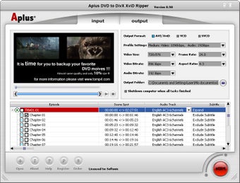 Aplus DVD to Divx Xvid Ripper es una aplicación diseñada para la conversión de DVDs a formatos de video DivX y Xvid. Este programa, disponible en versión de prueba para Windows, permite a los usuarios extraer contenido de sus discos DVD y convertirlo en archivos de video que son más fáciles de gestionar y reproducir en diferentes dispositivos. La interfaz es intuitiva, lo que facilita la navegación y el uso de las diversas funciones que ofrece.